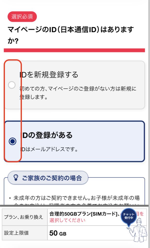 【50GBプラン申込】タップ