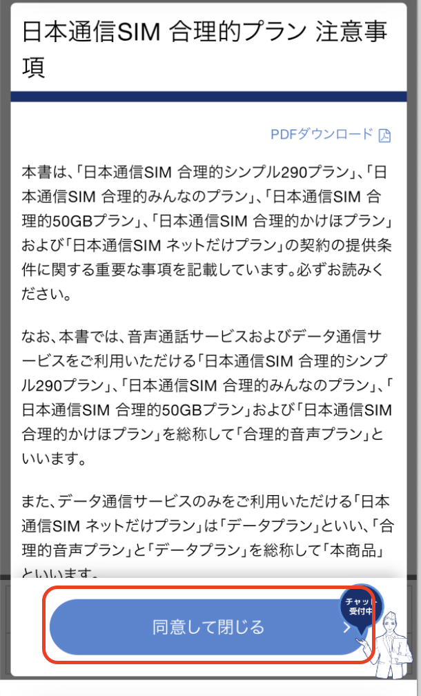 【同意して閉じる】をタップ