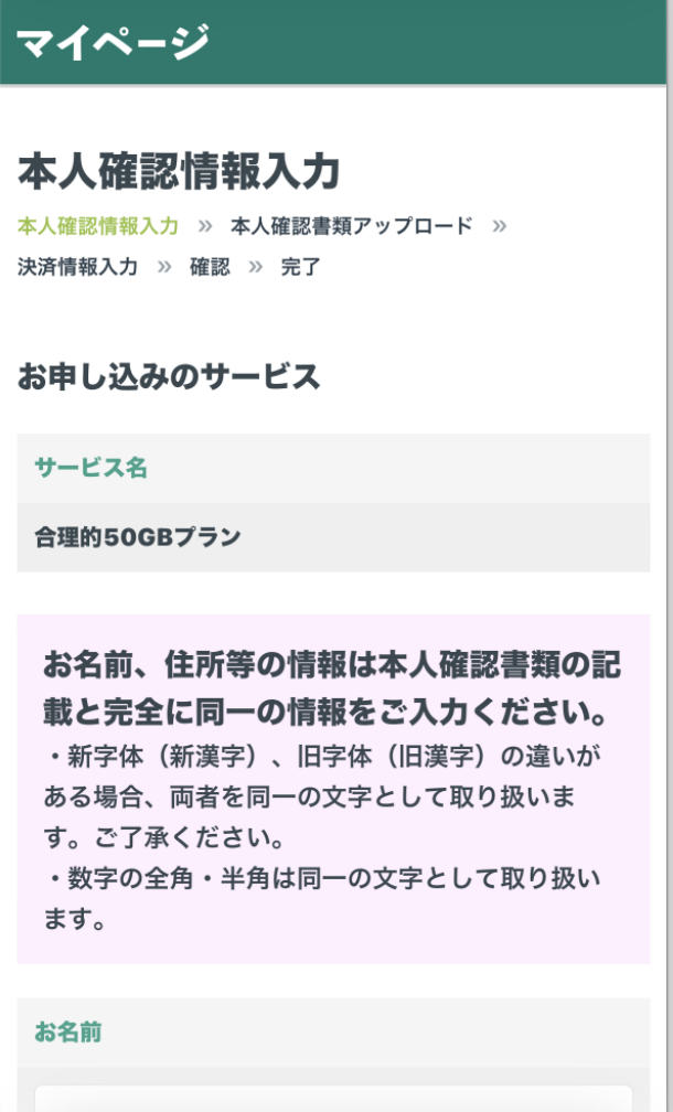 今回は50GBプランにて進めてます