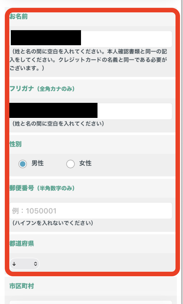 本人情報を入力
