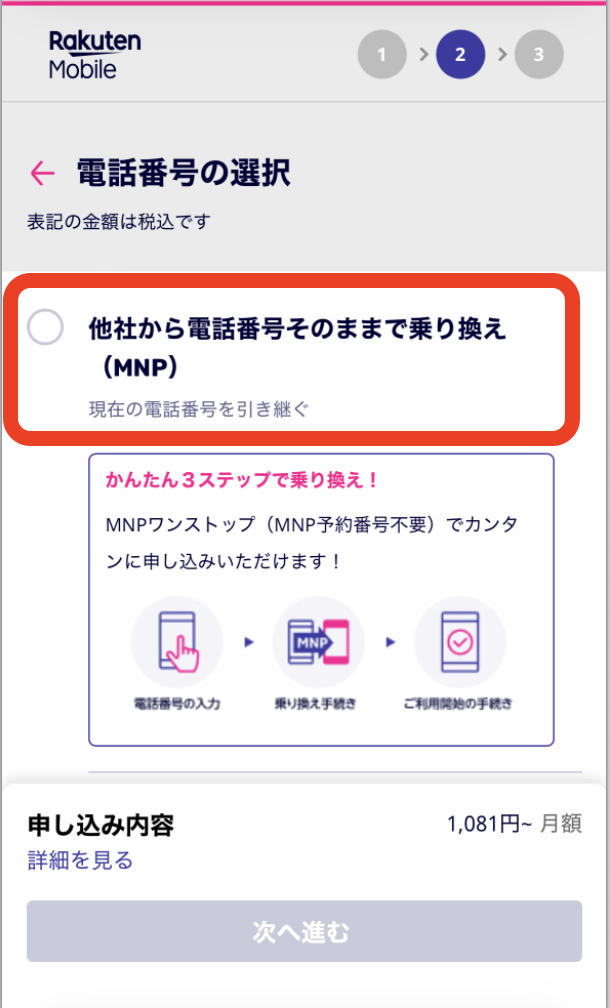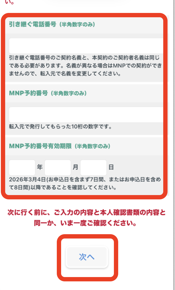 MNP番号の予約が必要となります
