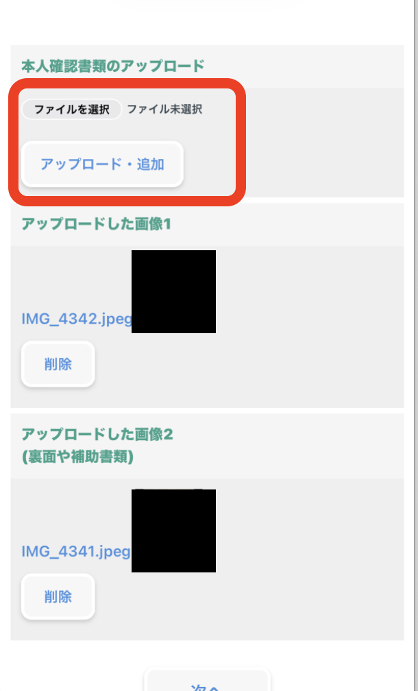 本人書類のアップロード