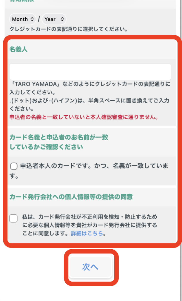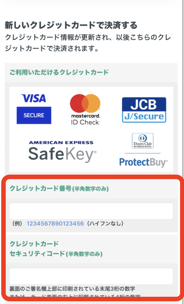 決済情報入力