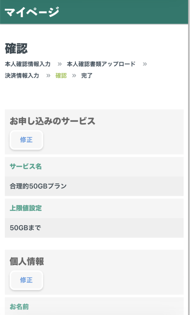 プランの確認画面