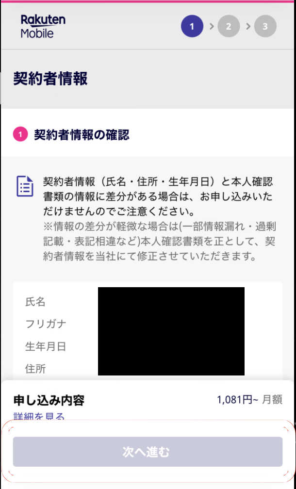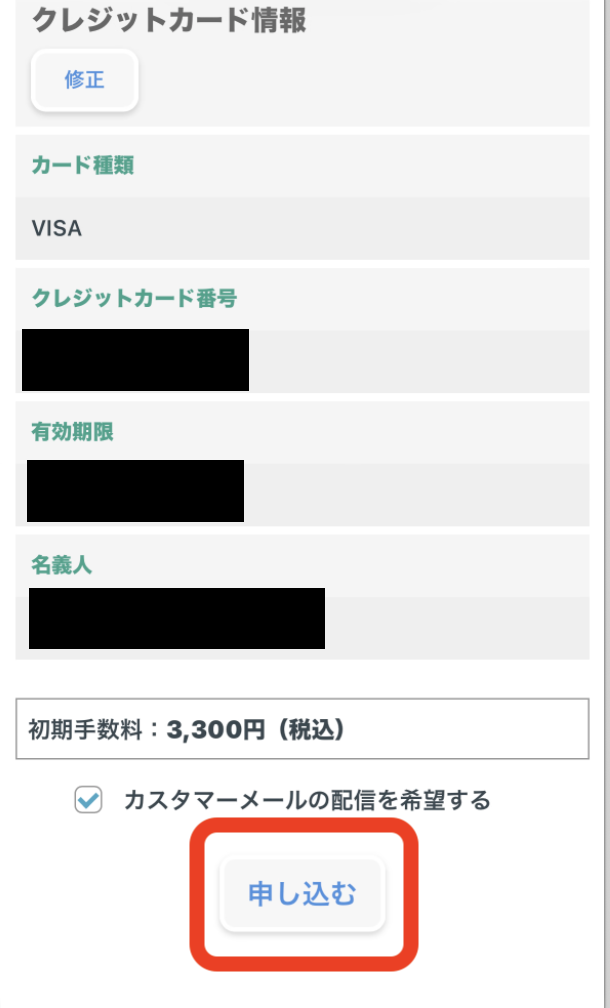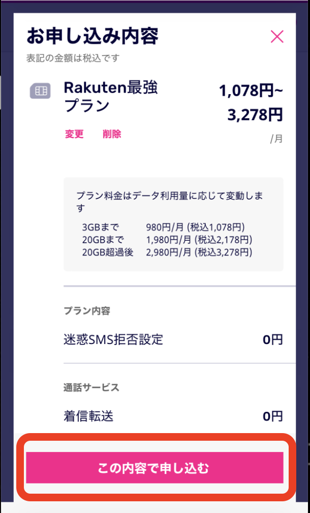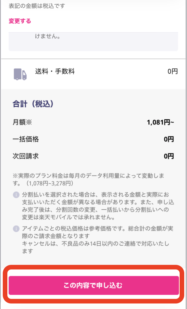 【この内容で申し込む】をタップ