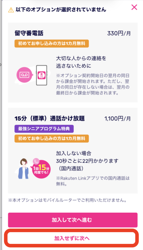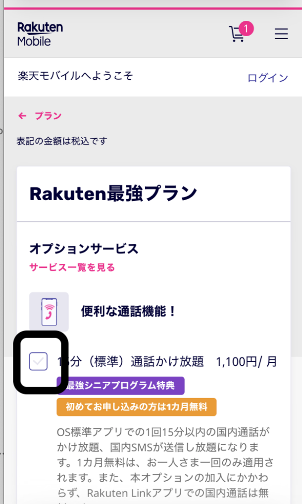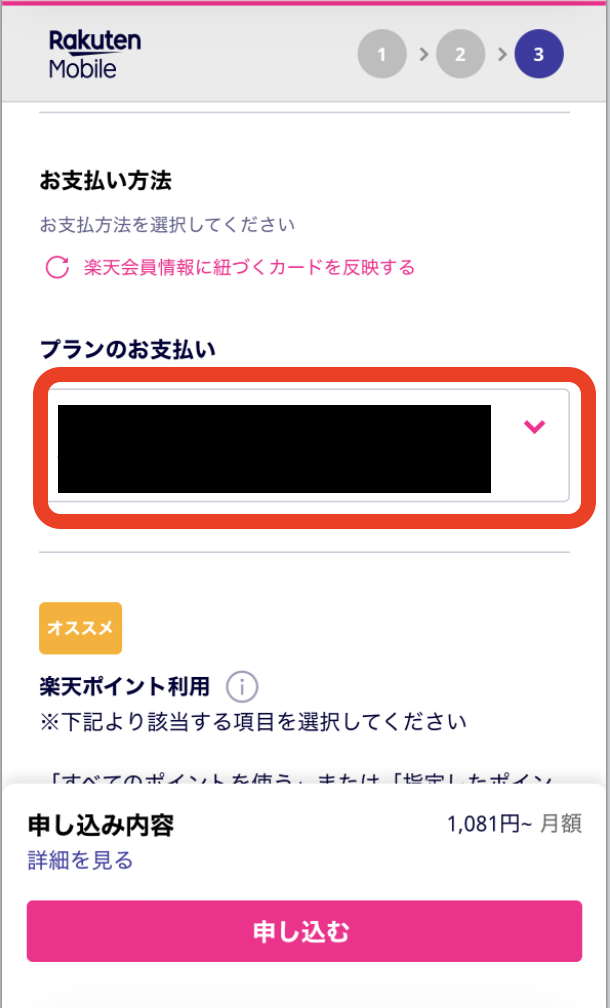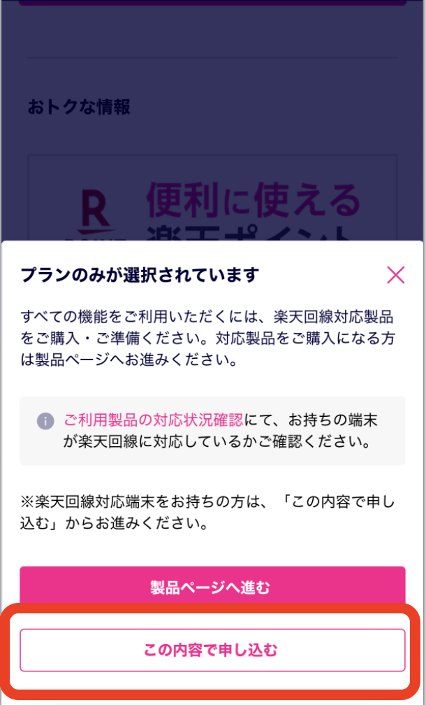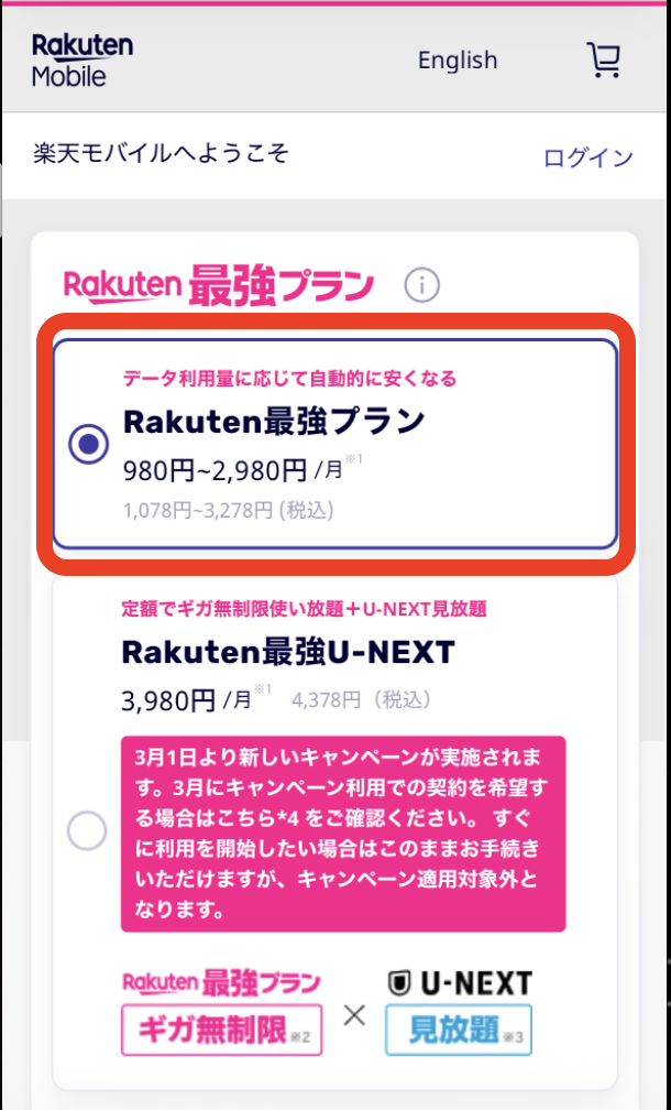 プラン(楽天最強プラン)選択