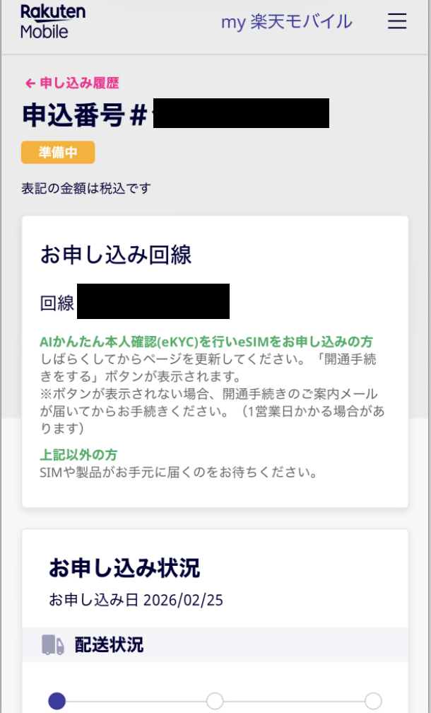 審査待ち → 審査が通ったらSIMカード待ち