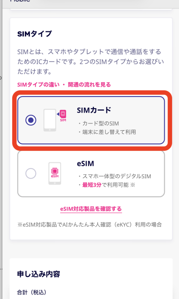 SIMタイプ選択