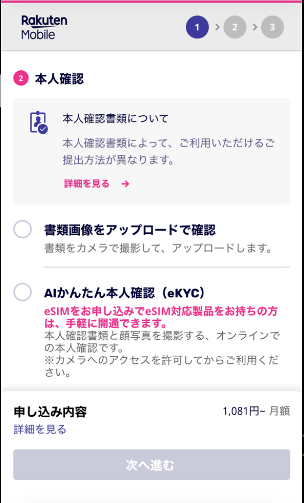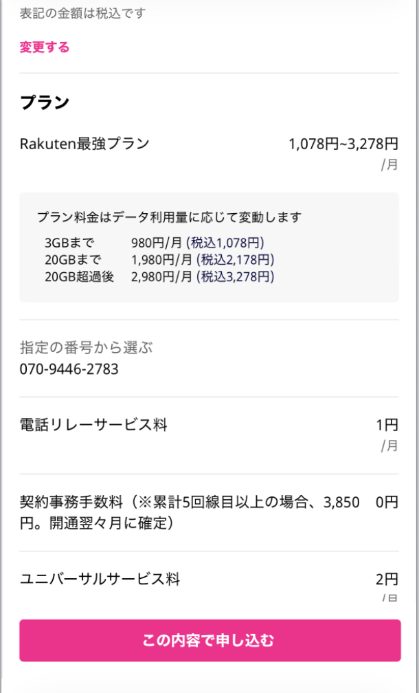 楽天モバイルの場合