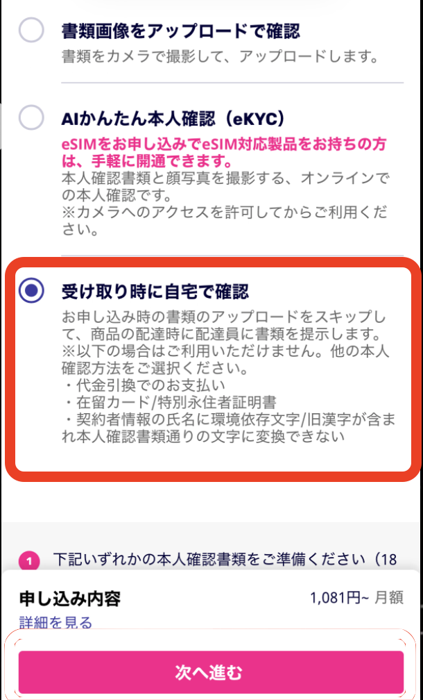 アップロードが難しいなら【受け取り時に自宅で確認】選択