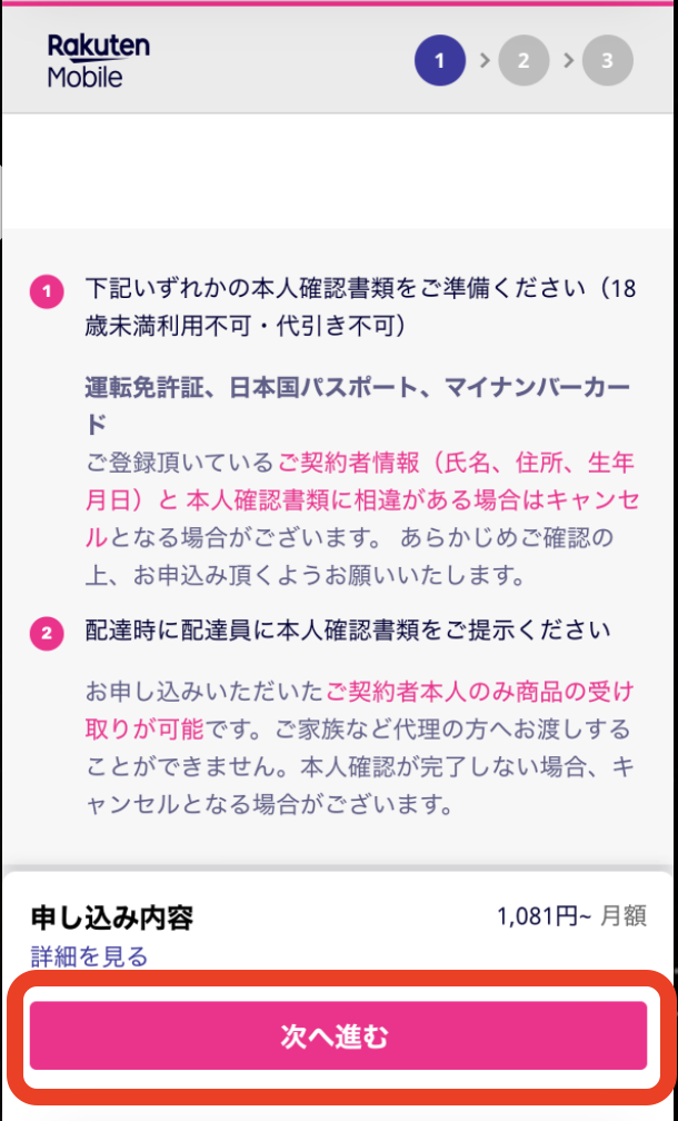 【次へ進む】をタップ