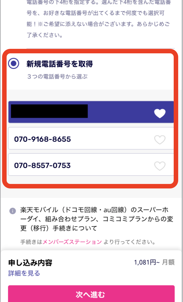 他社からの電話番号そのまま乗り換えの場合は画像左を選択