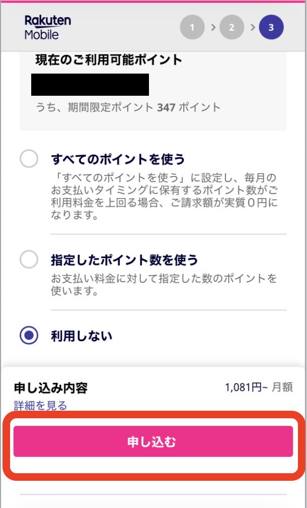 問題なければ【申し込む】をタップ