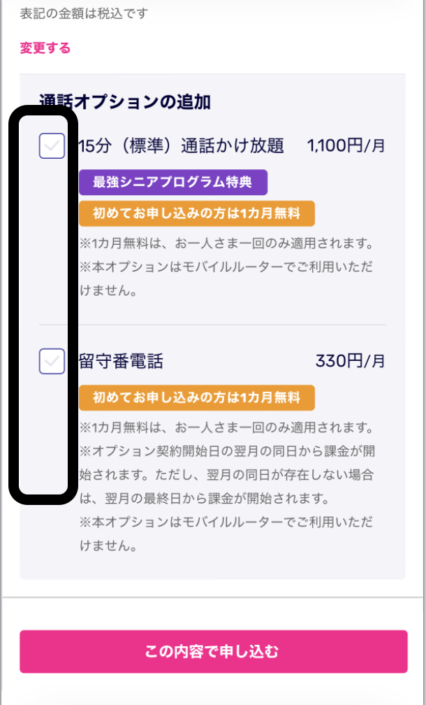 この内容で申し込む(本体は自分で手配します)