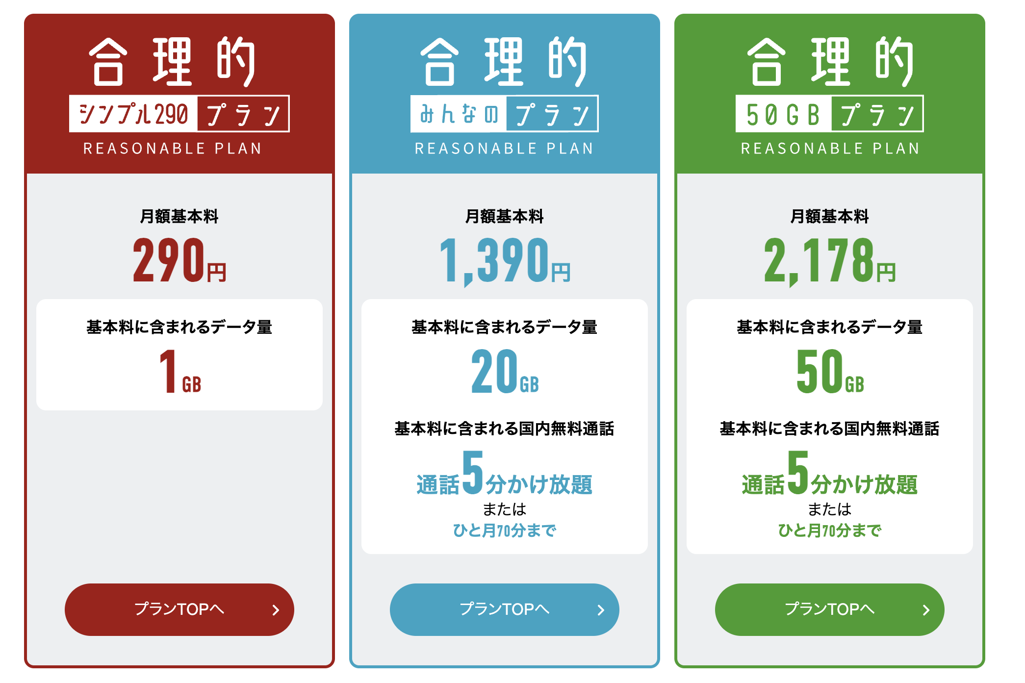 • 一番高いプラン(50GBプラン)でも2178円と安い