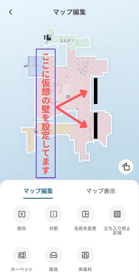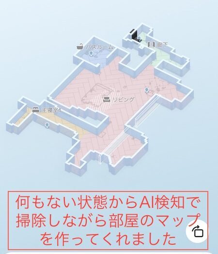 部屋の形も走りながら自動でアプリに生成し、どこにどんな物があるかなども同時に判別しマップを作成します。